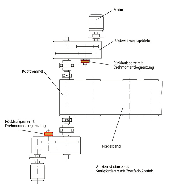 Thanks to the simple release function and the very robust design as a whole, the new high-speed backstops from RINGSPANN are also ideally suited to dirty and dusty operating environments. A typical area of application, therefore, is in the multiple drive systems of conveyor systems in bulk goods, mining and heavy industries. Here, the backstops protect the built-in gearboxes against overload damages at different points of the installations thanks to what is usually a very uneven distribution of the arising load in the event of a reverse rotation – e.g. in the event of a shutdown or a sudden emergency stop. They also protect the entire drivetrain against dynamic peak torques.