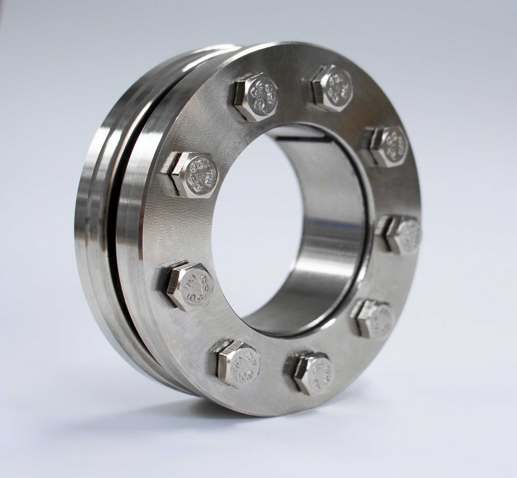 Bad Homburg, October 2020. – RINGSPANN has in its recent past integrated many more shaft-hub-connections into its one-stop offer for drive technology and has raised the performance level of several series on the basis of an improved frictional connection calculation method. In addition, various external and internal clamping solutions that meet particularly high corrosion protection requirements have now found their way into the portfolio. These include in particular the stainless steel series RLK 603 K (shrink discs) and the nickel-plated series RLK 110 K (cone clamping elements). The main users of these corrosion-resistant shaft-hub-connections from RINGSPANN include, in particular, machine and plant manufacturers in food technology, pharmaceutical and medical technology, chemical and process technology as well as packaging, filling and fluid technology. "Furthermore, manufacturers of agricultural and construction machinery also use these extremely durable components to create weatherproof and wear-resistant drive trains," says Marvin Raquet, product manager for RINGSPANN´s shaft-hub-connections.